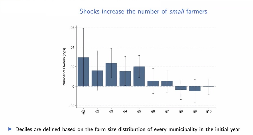 Heat shocks put downward pressure on farm size. “Effects concentrated in the left tail of the farm size distribution,” Pellegrina noted.